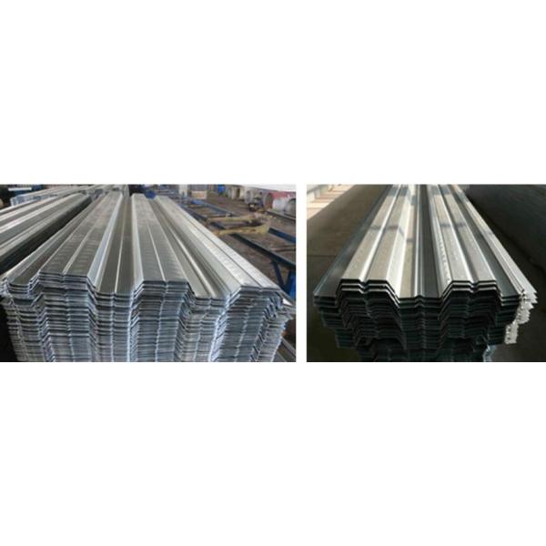 The metal deck produced by floor decking roll forming line has high strength with big wave length. It adheres well to concrete. Used on high building, it not only saves steel mold plate, but also reduces the weight of storey. With the same bearing capacity, it economized steel and cuts down investment accordingly.